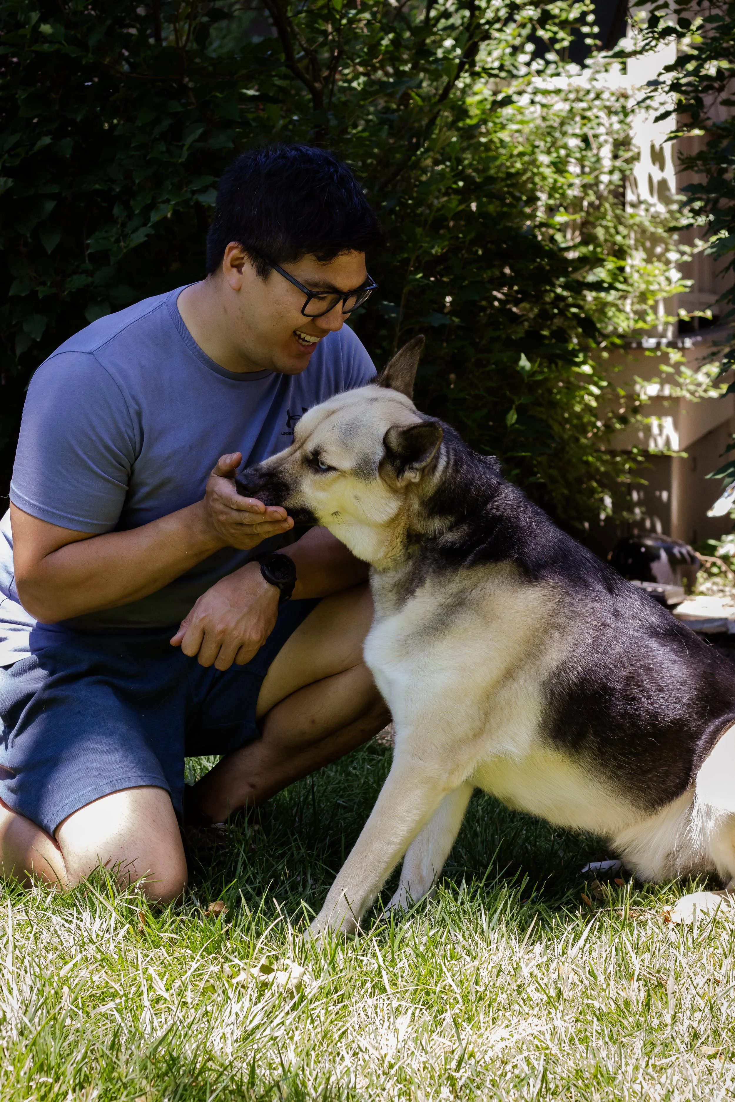 Foursquare Gardens is a family business primarily run by me, Andrew Chen. My wife Alison helps with design, garden planning, and seedling starting, and our dog Oliver provides moral support.